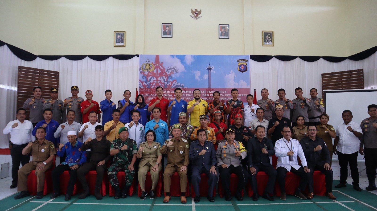Polres Gunung Mas – Dalam rangka menjaga suasana damai dan mendukung proses demokrasi yang berjalan dengan baik, berbagai elemen masyarakat, partai politik, dan instansi terkait hari ini melakukan deklarasi damai Menjelang pemilihan umum (pemilu) Tahun 2024 yang akan digelar dalam beberapa bulan mendatang. Bertempat Aula Patriatama Polres Gunung Mas, Polda Kalteng, Gunung Mas (gumas). Senin 11/9/23 sekitar pukul 10.00 WIB.