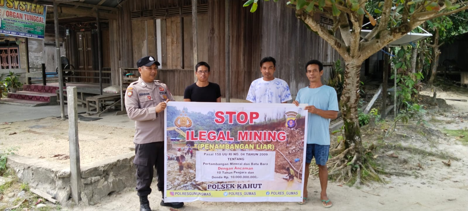 Kapolsek Kahut Ipda Supono mengatakan Personel Polsek Kahut membentangkan spanduk yang bertuliskan “ Stop Ilegal Mining serta sanksi pidana” Pasal 158 Undang Undang No.4 tahun 2009 Pidana Penjara 10 tahun dan denda 10 paling banyak 10 Milyar memberikan himbauan bersama-sama dalam menanggulangi Ilegal Mining.