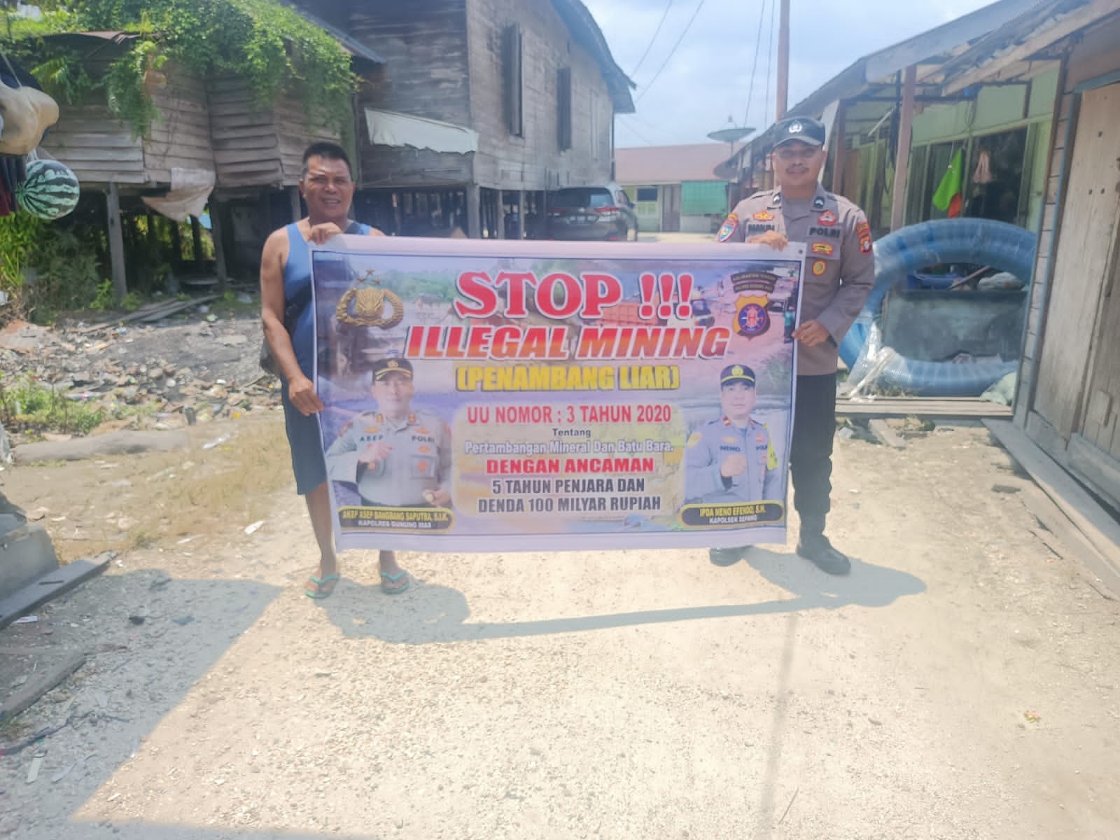 Kapolsek Sepang Ipda Neno Efendo mengatakan Personel Polsek Sepang membentangkan spanduk bertuliskan “ Stop Ilegal Mining serta sanksi pidana” Pasal 158 Undang Undang No.4 tahun 2009 Pidana Penjara 10 tahun dan denda 10 paling banyak 10 Milyar memberikan himbauan bersama-sama dalam menanggulangi Ilegal Mining.