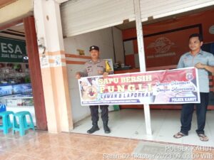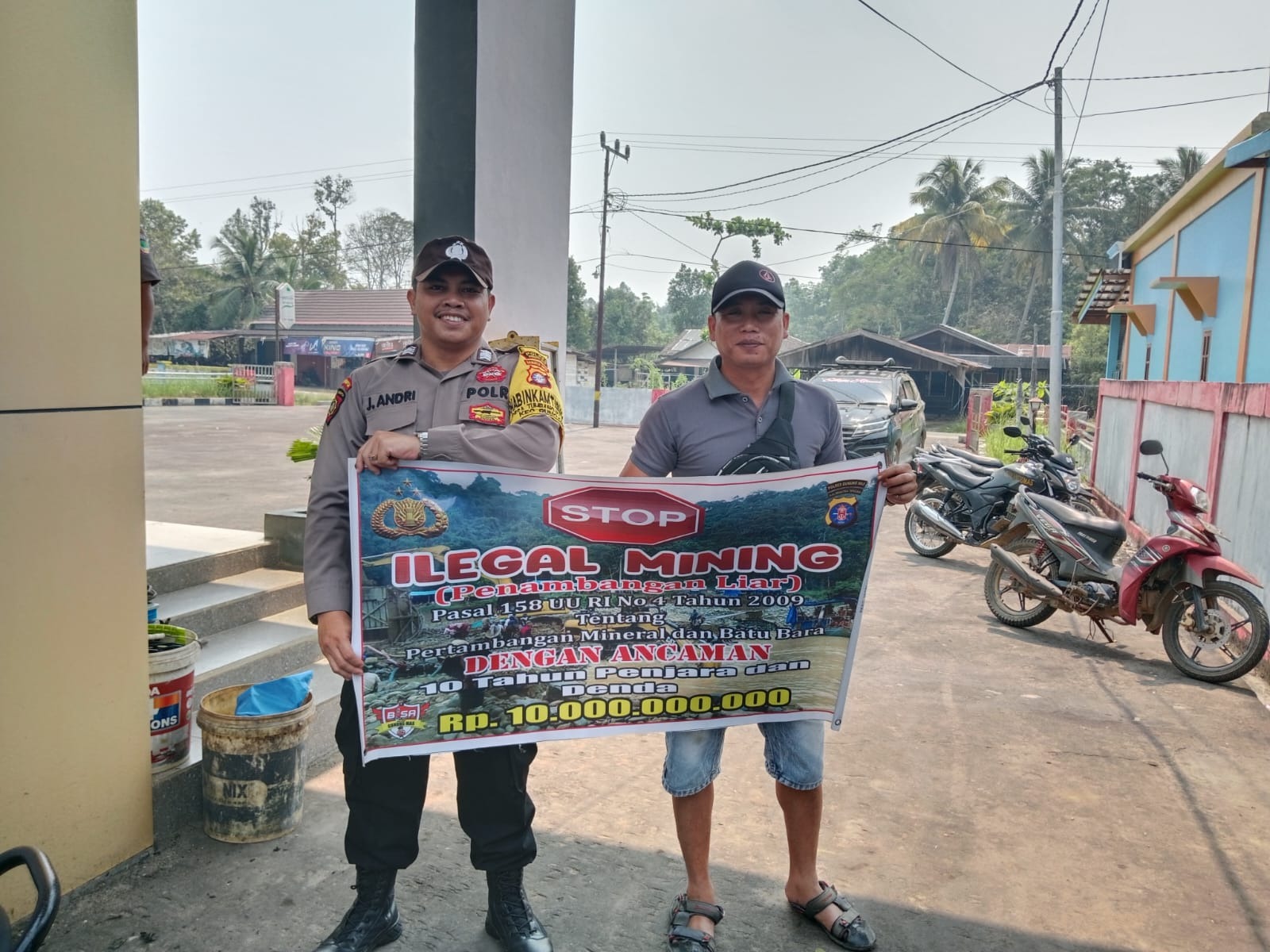 Bhabinkamtibmas Polsek Rungan membentangkan spanduk bertuliskan “ Stop Ilegal Mining serta sanksi pidana” Pasal 158 Undang Undang No.4 tahun 2009 Pidana Penjara 10 tahun dan denda 10 paling banyak 10 Milyar memberikan himbauan bersama-sama dalam menanggulangi Ilegal Mining.
