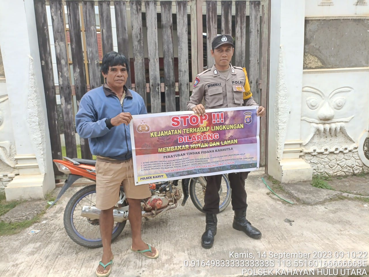 Polres Gunung Mas – Jajaran Polsek Kahayan Hulu Utara (Kahut) , Polres Gunung Mas, Polda Kalteng, gencar sosialisasi larangan kebakaran hutan dan lahan (Karhutla) di wilayah hukumnya. Senin, (2/10/2023) Siang.