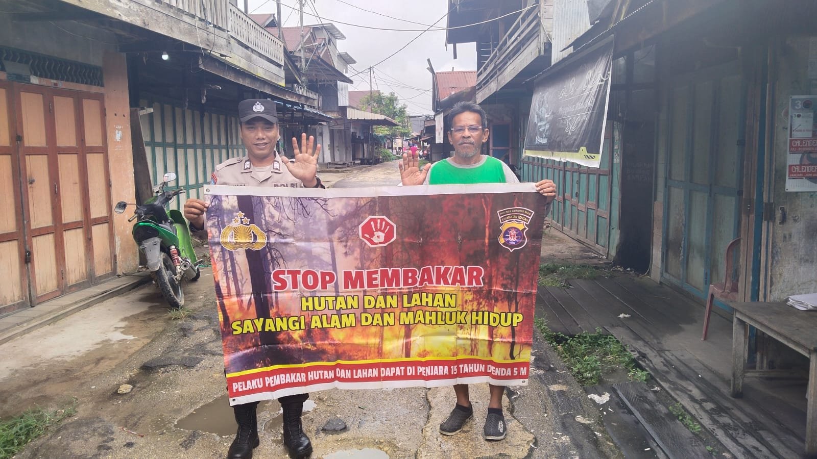 Polres Gunung Mas – Polsek Tewah jajaran Polres Gunung Mas (Gumas) Polda Kalteng dalam aksi mencegah Kebakaran Hutan dan lahan (Karhutla) memberi himbauan seperti menempel sticker/pamplet di rumah atau kios milik masyarakat tentang larangan dan bahaya membakar hutan dan lahan. Kamis, (9/11/2023) pukul 13.00 Wib.