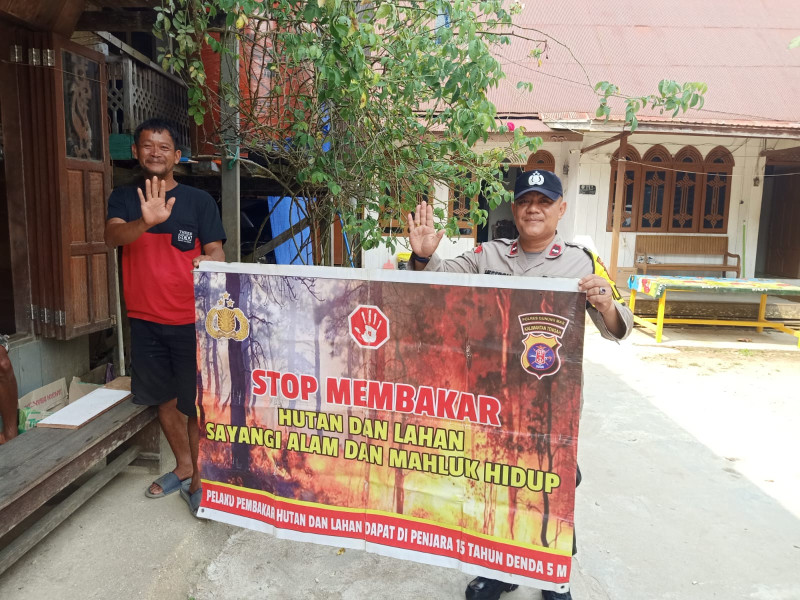 Polres Gunung Mas – Polsek Tewah jajaran Polres Gunung Mas (Gumas) Polda Kalteng dalam aksi mencegah Kebakaran Hutan dan lahan (Karhutla) memberi himbauan seperti menempel sticker/pamplet di rumah atau kios milik masyarakat tentang larangan dan bahaya membakar hutan dan lahan. Sabtu, (11/11/2023) pukul 13.00 Wib.
