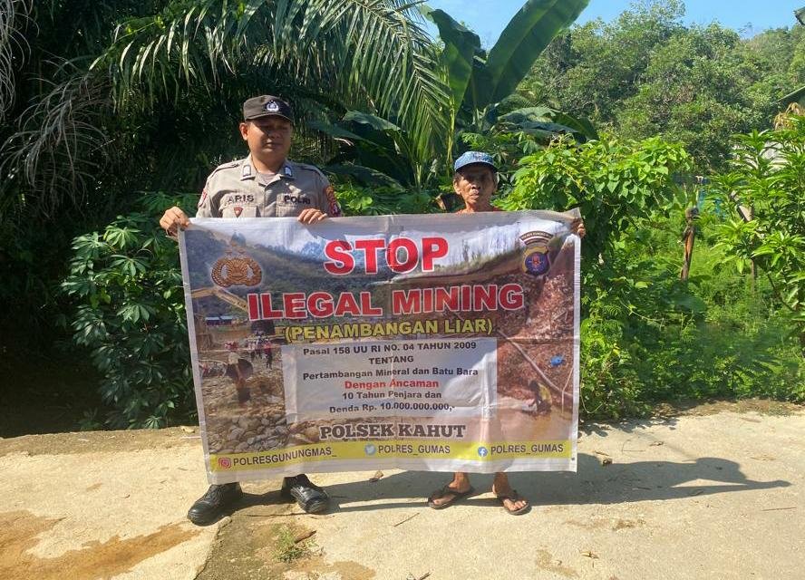 Kapolsek Kahut Ipda Supono mengatakan Personel Polsek Kahut membentangkan spanduk yang bertuliskan “ Stop Ilegal Mining serta sanksi pidana” Pasal 158 Undang Undang No.4 tahun 2009 Pidana Penjara 10 tahun dan denda 10 paling banyak 10 Milyar memberikan himbauan bersama-sama dalam menanggulangi Ilegal Mining.