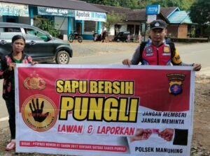 Dalam kesempatan ini personel Polsek Manuhing memasang maklumat Polda Kalteng yang berisikan tentang pencegahan Karhutla yang berisikan larangan dan sanksi pidana bagi pelaku pembakar hutan dan lahan kepada masyarakat agar diimplementasikan dan diketahui.