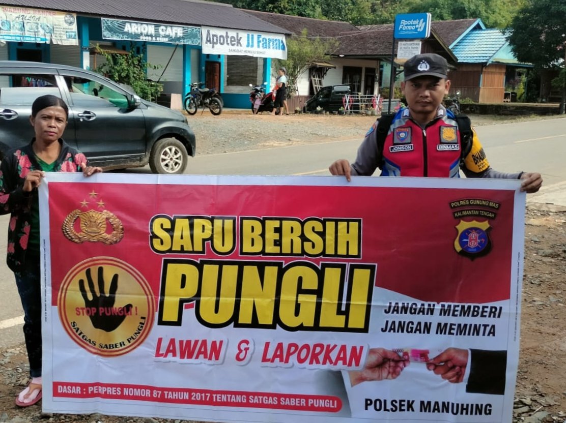 “Kami minta agar seluruh masyarakat segera menghubungi tim saber pungli jika melihat, mendengar atau mengetahui adanya tindakan pungutan liar ” Ujar Iptu Suwardi, S.H selaku Kapolsek Manuhing.