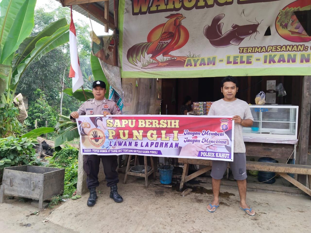 Dala hal ini Polsek kahut membentangkan Spanduk Yang Bertuliskan Stop Pungli, Pemberi dan Penerima sama – sama melanggar hukum, apabila ada pungli laporkan segera.
