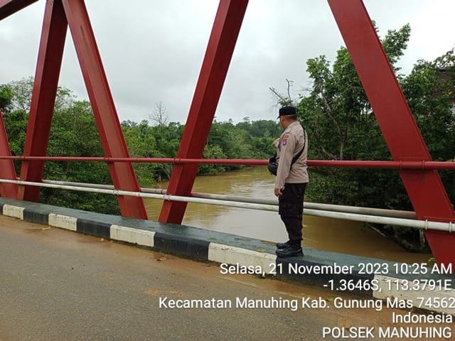 Polres Gunung Mas – Mengantisipasi terjadinya bencana Banjir, Personel Polsek Manuhing jajaran Polres Gunung Mas (Gumas), Polda Kalteng melaksanakan kegiatan Pantau Debit Air di wilayah hukumnya. Selasa, (21/11/2023) Siang.