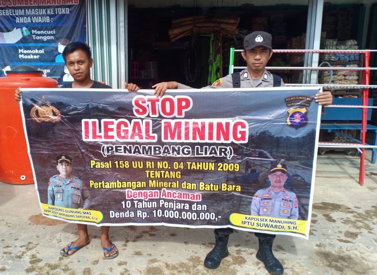 Dalam Sosialisasinya personel Polsek Manuhing, menjelaskan tentang apa saja yang dilarang dalam penambangan tanpa ijin serta menjelaskan sanksi-sanksi pidana dan hukumannya kepada masyarakat, untuk masyarakat yang melakukan Penambangan tanpa ijin karena melanggar hukum.