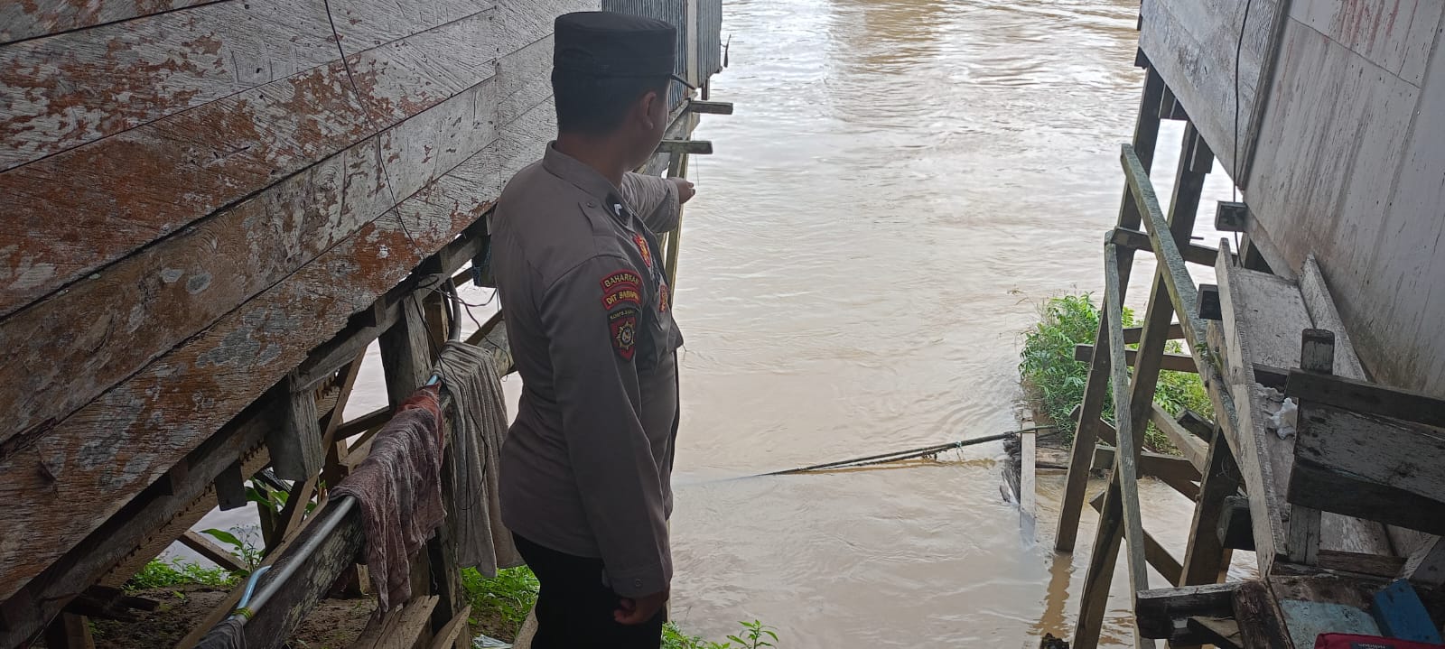 Personel Polsek Tewah melaksanakan patroli pantau debit air sungai Kahayan guna mencegah terjadinya korban dampak dari bencana alam banjir dan memberi himbauan kepada masyarakat.