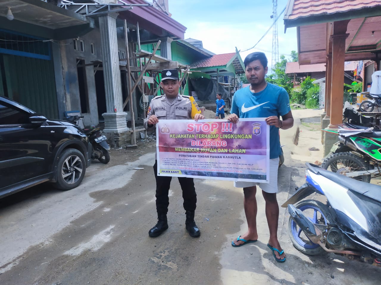 Polres Gunung Mas – Jajaran Polsek Kahayan Hulu Utara (Kahut) , Polres Gunung Mas, Polda Kalteng, gencar sosialisasi larangan kebakaran hutan dan lahan (Karhutla) di wilayah hukumnya. Jum’at, (8/12/2023) Siang.