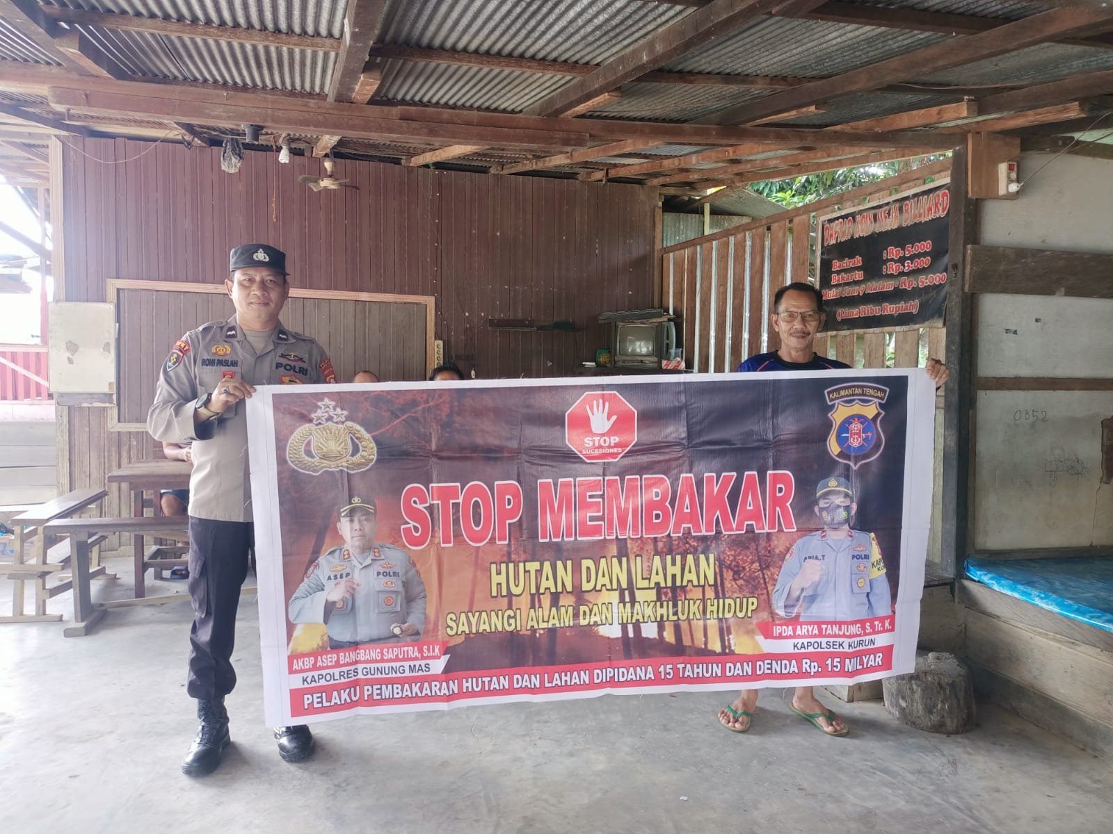Polres Gunung Mas – Jajaran Polsek Kurun, Polres Gunung Mas (Gumas) melakukan patroli dan sosialisasi serta memberi imbauan kepada masyarakat tentang larangan dan bahaya membakar hutan dan lahan (Karhutla). Kamis, (14/12/2023) siang.