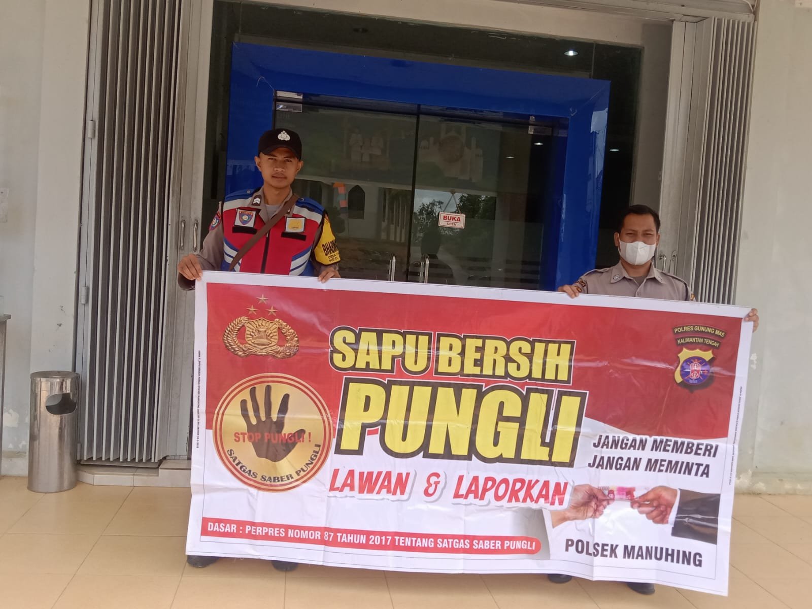 “Kami minta agar seluruh masyarakat segera menghubungi tim saber pungli jika melihat, mendengar atau mengetahui adanya tindakan pungutan liar ” Ujar Iptu Suwardi, S.H selaku Kapolsek Manuhing.