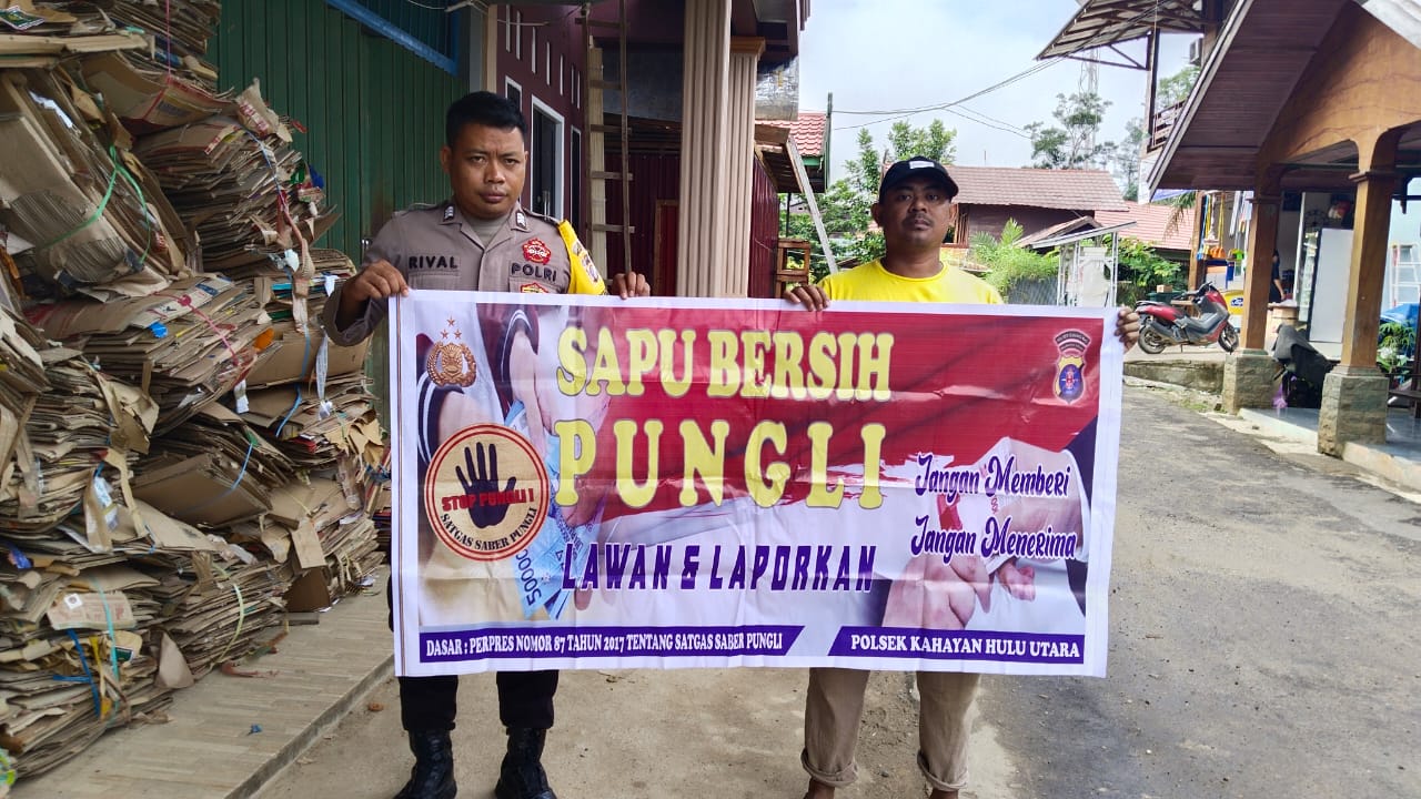 Polres Gunung Mas – Personel Polsek Kahayan Hulu Utara (Polsek Kahut), Polda Kalteng, Gunung Mas, Kalimantan Tengah, mengedukasi kepada masyarakat setempat tentang bahaya pungutan liar. Langkah ini dilakukan sebagai upaya keras untuk memerangi praktik ilegal ini dan memberikan informasi kepada masyarakat mengenai hak-hak mereka serta konsekuensi hukum yang terkait dengan pungutan liar. Rabu (31/01/24) sekira pukul 11.00 WIB.