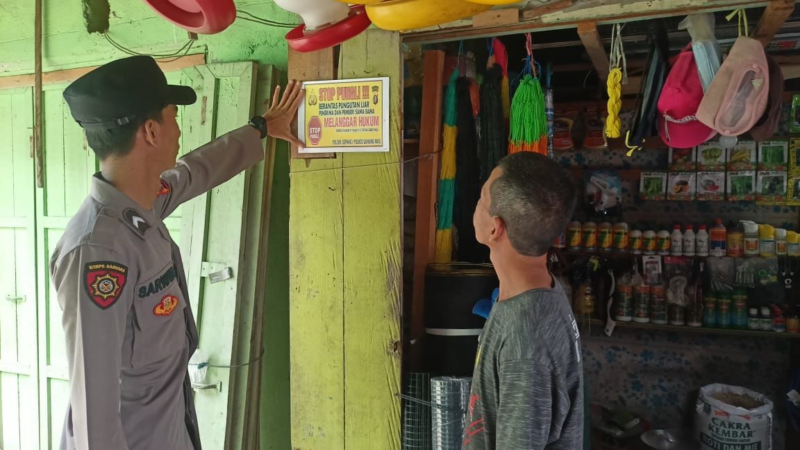 Polres Gunung Mas – Personel Polsek Sepang, Polda Kalteng, Gunung Mas, Kalimantan Tengah, mengedukasi kepada masyarakat setempat tentang bahaya pungutan liar. Langkah ini dilakukan sebagai upaya keras untuk memerangi praktik ilegal ini dan memberikan informasi kepada masyarakat mengenai hak-hak mereka serta konsekuensi hukum yang terkait dengan pungutan liar. Sabtu (17/2/24) sekira pukul 11.00 WIB.