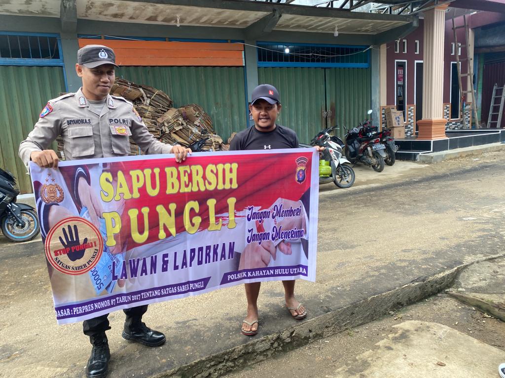 Polres Gunung Mas – Personel Polsek Kahayan Hulu Utara (Polsek Kahut), Polda Kalteng, Gunung Mas, Kalimantan Tengah, mengedukasi kepada masyarakat setempat tentang bahaya pungutan liar. Langkah ini dilakukan sebagai upaya keras untuk memerangi praktik ilegal ini dan memberikan informasi kepada masyarakat mengenai hak-hak mereka serta konsekuensi hukum yang terkait dengan pungutan liar. Senin (19/2/24) sekira pukul 11.00 WIB.
