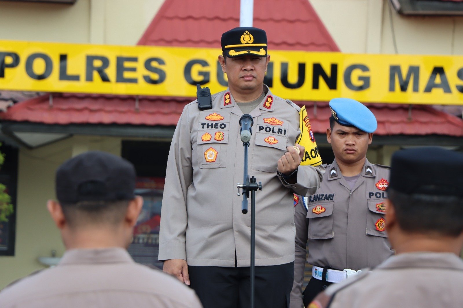 Kapolres Gunung Mas, Polda Kalteng, AKBP Theodorus Priyo Santosa, S.I.K. memimpin apel pagi yang bertempat di lapangan Tantya Sudhirajati Polres setempat, Kuala Kurun, Gunung Mas (gumas), Kalimantan Tengah (kalteng), memunculkan tiga penekanan bagi personil. Dalam apel yang digelar pada pagi ini, Kapolres menyoroti tindakan tegas terhadap personil yang terlambat dan tanpa alasan yang jelas.