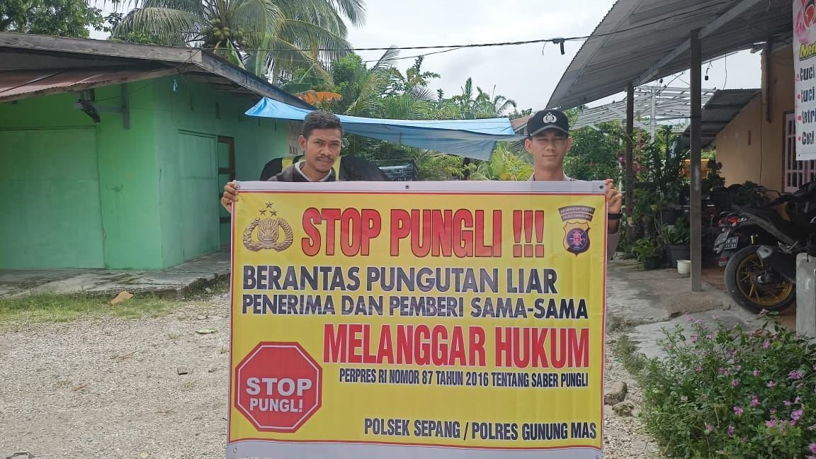 Polres Gunung Mas – Personel Polsek Sepang, Polda Kalteng, Gunung Mas, Kalimantan Tengah, mengedukasi kepada masyarakat setempat tentang bahaya pungutan liar. Langkah ini dilakukan sebagai upaya keras untuk memerangi praktik ilegal ini dan memberikan informasi kepada masyarakat mengenai hak-hak mereka serta konsekuensi hukum yang terkait dengan pungutan liar. Selasa (19/3/24) sekira pukul 11.00 WIB.