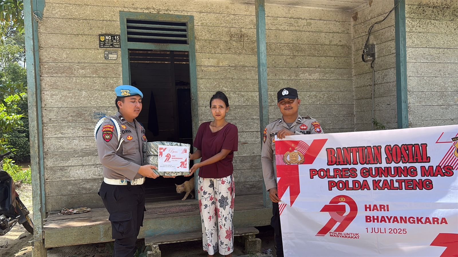 Jakatan Raya, Gunung Mas – Dalam suasana menyambut Hari Bhayangkara ke-79, jajaran Polsek Rungan kembali menunjukkan kepeduliannya dengan menyambangi langsung warga di Kelurahan Jakatan Raya, Kecamatan Rungan. Dua personel muda Polsek Rungan melaksanakan kegiatan Bakti Sosial (Baksos) dengan mengantarkan bantuan paket sembako ke rumah warga yang membutuhkan. Kamis (19/6/2025).