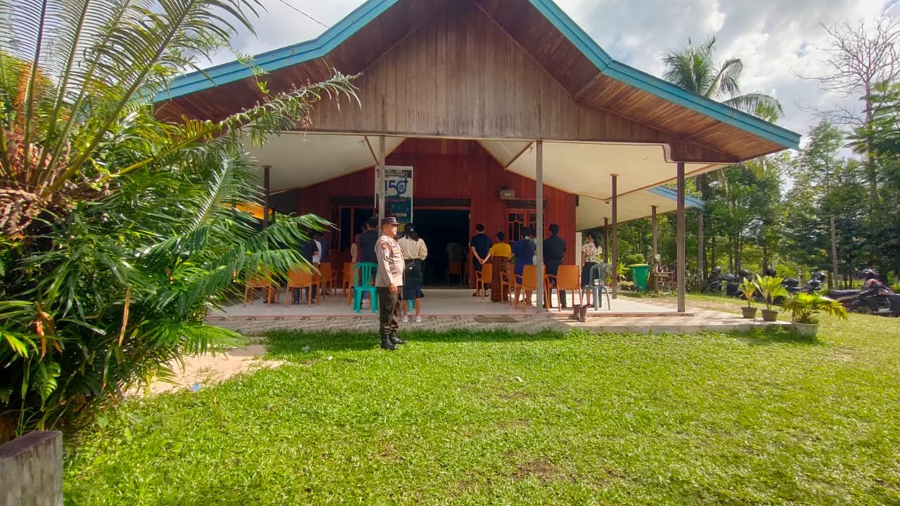 Personel Polsek Kurun terlihat melakukan pemantauan di sekitar lingkungan gereja, memastikan situasi aman dan kondusif. Mereka juga berdialog singkat dengan petugas keamanan internal gereja untuk berkoordinasi dan memastikan tidak ada potensi gangguan yang dapat mengusik kekhidmatan ibadah para jemaat.