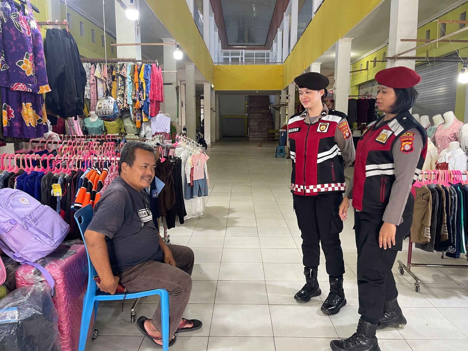 Tim patroli yang terdiri dari Brigpol Gita Septiyanti, Bripda Kristin, dan Bripda Atrila Dela Yuni memulai rute dari Mapolres Gunung Mas, bergerak menyusuri jalan kantor bupati menuju kawasan Pasar Baru, serta menyambangi pertokoan di sekitarnya.