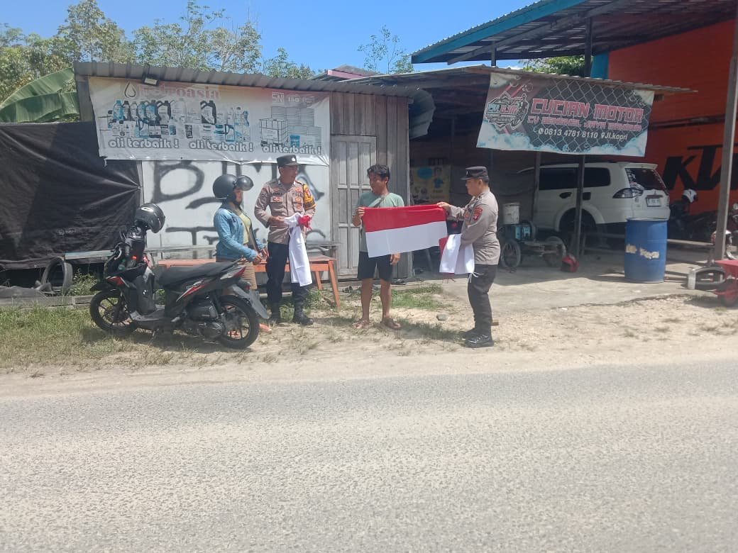 Kuala Kurun, Gunung Mas – Semangat untuk menyambut Hari Ulang Tahun (HUT) Kemerdekaan Republik Indonesia yang ke-80 mulai digelorakan di Kecamatan Kurun, Kabupaten Gunung Mas. Sebagai wujud nyata dalam memupuk rasa cinta tanah air, jajaran Polsek Kurun turun langsung ke jalan untuk membagikan bendera Merah Putih kepada masyarakat, Selasa (5/8/2025).