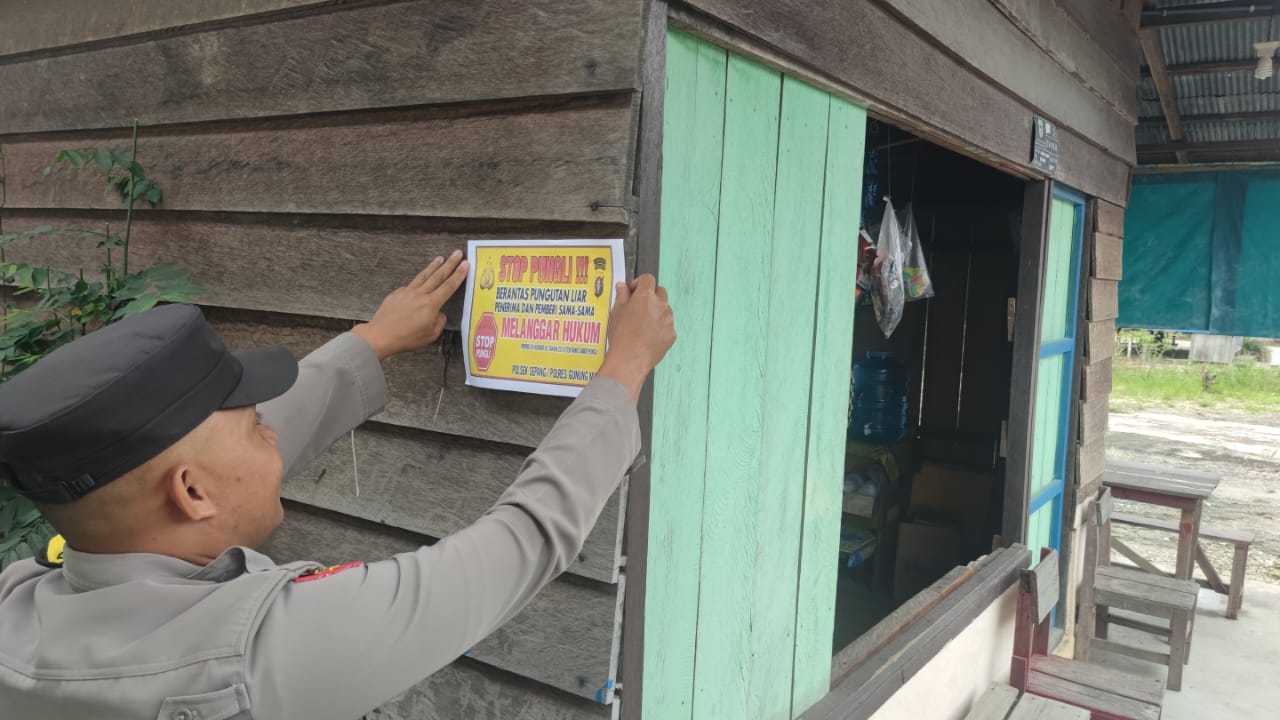 Polres Gunung Mas – Personel Polsek Sepang, Polda Kalteng, Gunung Mas, Kalimantan Tengah, mengedukasi kepada masyarakat setempat tentang bahaya pungutan liar. Langkah ini dilakukan sebagai upaya keras untuk memerangi praktik ilegal ini dan memberikan informasi kepada masyarakat mengenai hak-hak mereka serta konsekuensi hukum yang terkait dengan pungutan liar. Rabu (24/9/25) sekira pukul 10.00 WIB.