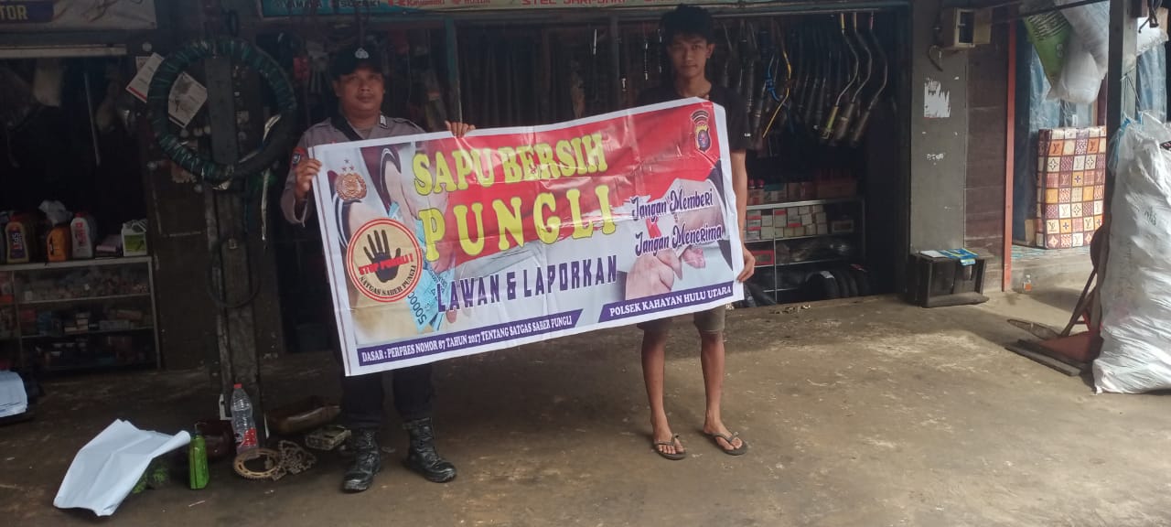Polres Gunung Mas – Personel Polsek Kahayan Hulu Utara (Polsek Kahut), Polda Kalteng, Gunung Mas, Kalimantan Tengah, mengedukasi kepada masyarakat setempat tentang bahaya pungutan liar. Langkah ini dilakukan sebagai upaya keras untuk memerangi praktik ilegal ini dan memberikan informasi kepada masyarakat mengenai hak-hak mereka serta konsekuensi hukum yang terkait dengan pungutan liar. Sabtu (4/10/25) sekira pukul 13.00 WIB.