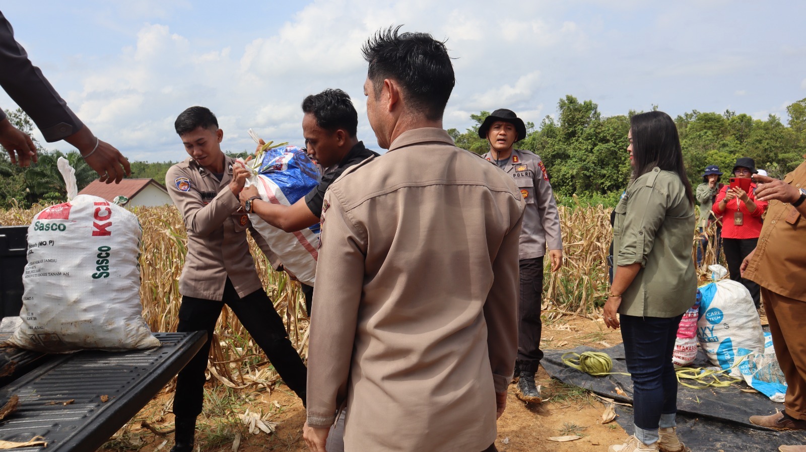 Manfaatkan Lahan Tidur, Kapolres Gunung Mas Pimpin Panen 1,2 Ton Jagung