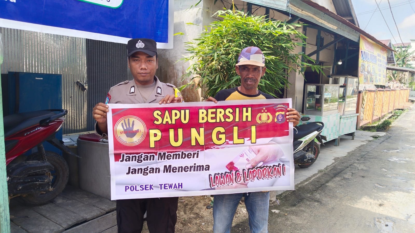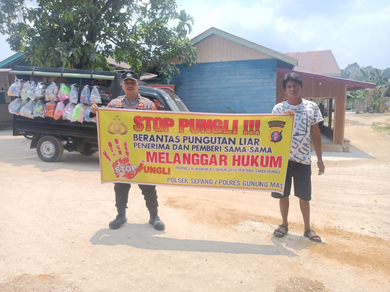 Cegah Pungli, Personil Polsek Sepang Sampaikan Himbauan Pencegahan Pungli Kepada Warganya Dengan Media Spanduk