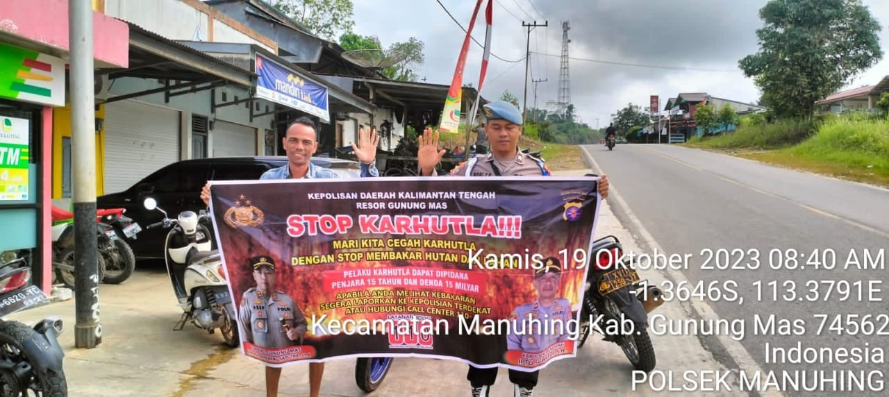 Personil Polsek Kahut Sampaikan Bahaya Karhutla Kepada Warganya